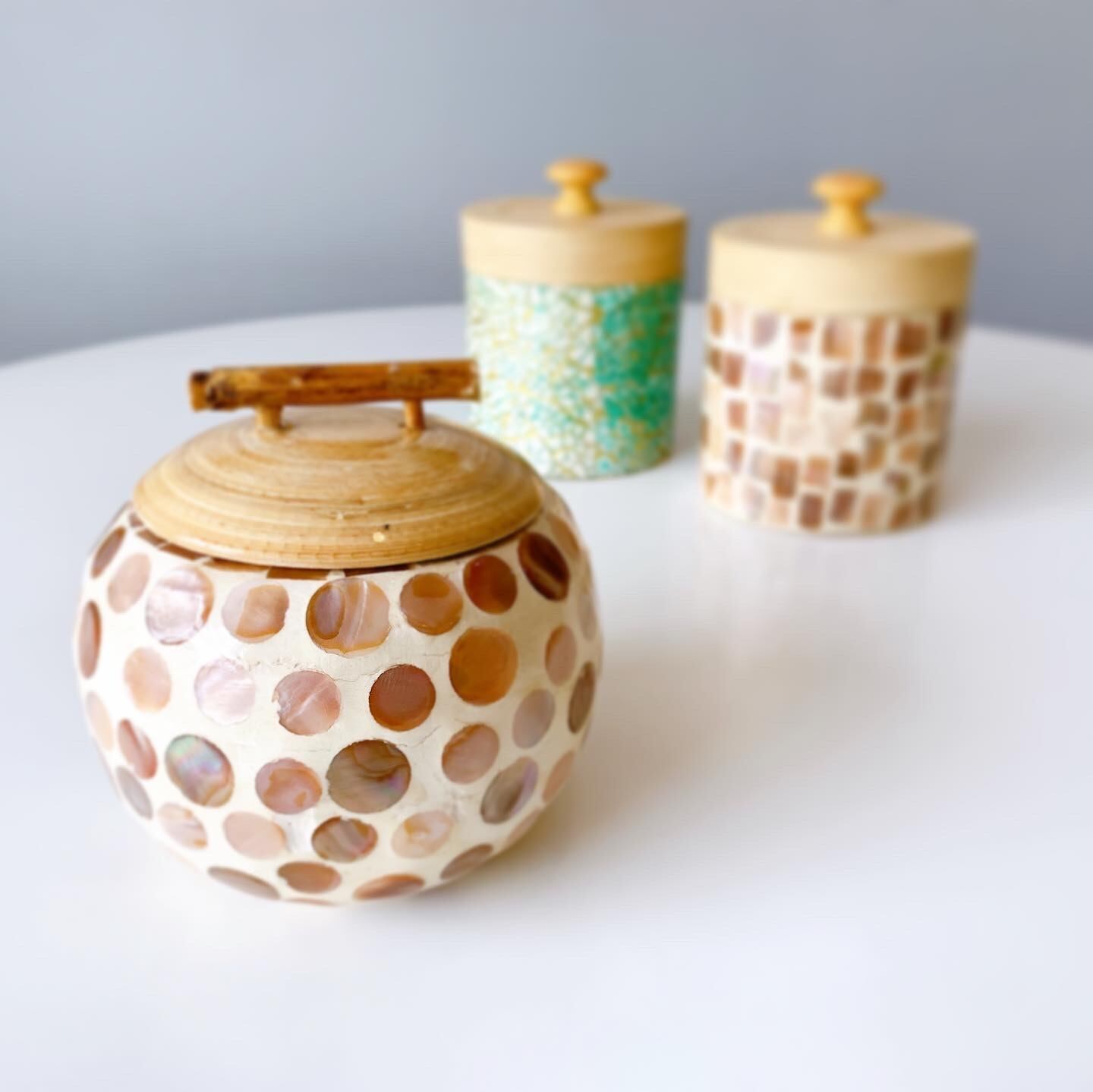 表面はシェルの埋め込み、フタや内側の部分は竹でできています。